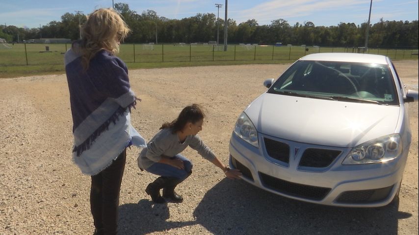 Mary Douget filed a claim with the parish's insurance company only to learn that the parish won't be covering the cost. She was leaving the parking lot near the soccer fields when it happened.
