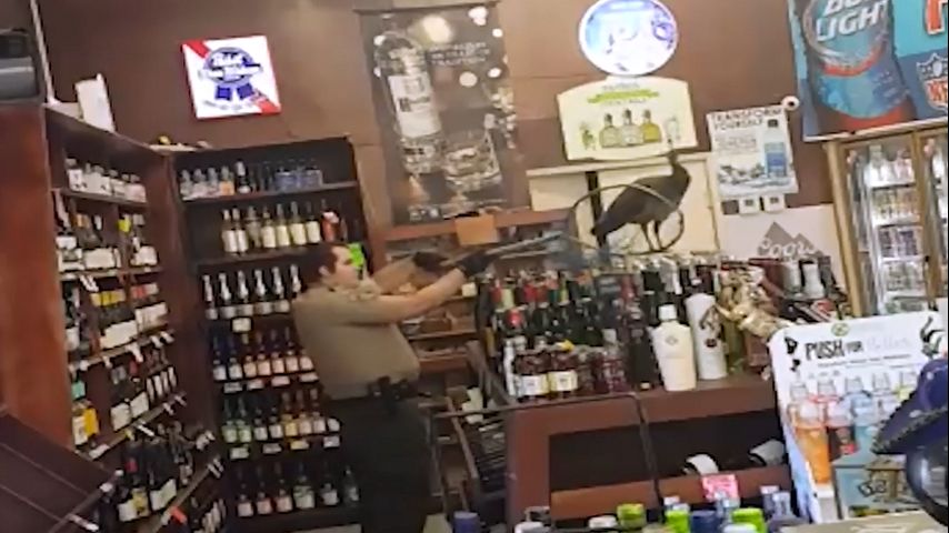 The incident happened at the Royal Oaks Liquor Store in Arcadia on Monday, ABC reports. The store manager, Rani Ghanem, says he tried to guide the bird outside but was unsuccessful.