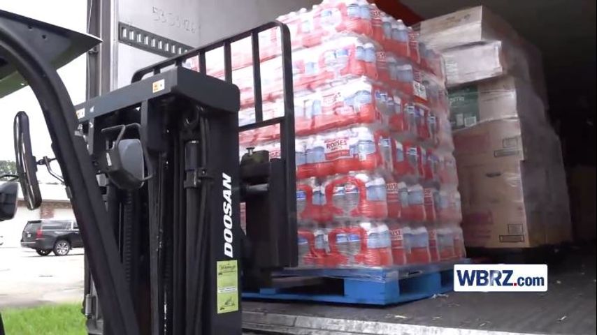 BATON ROUGE - A mad rush of customers pile in as workers sprint to get shelves restocked with bread while trucks unloaded pallets of water.