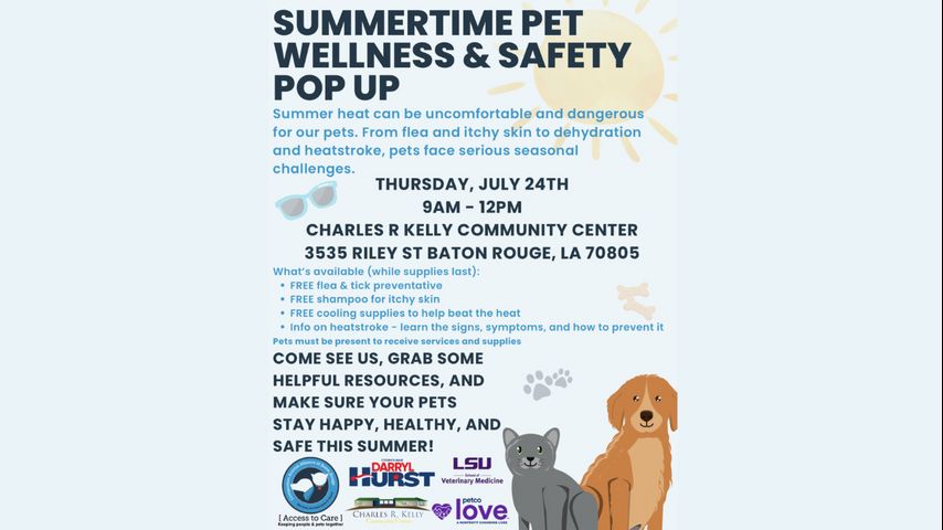 BATON ROUGE — Pet-owners can go to the upcoming Summertime Pet Wellness & Safety Pop-Up for free resources to protect their four-legged friends from seasonal challenges.