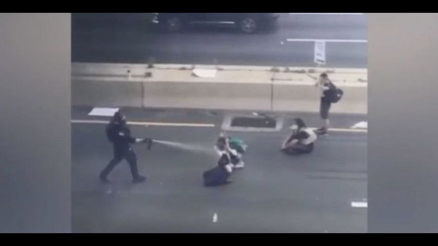 The three protesters who were sprayed were offered medical treatment and eventually made it off the roadway. A protester who was standing when Nicoletti approached the group was not sprayed.