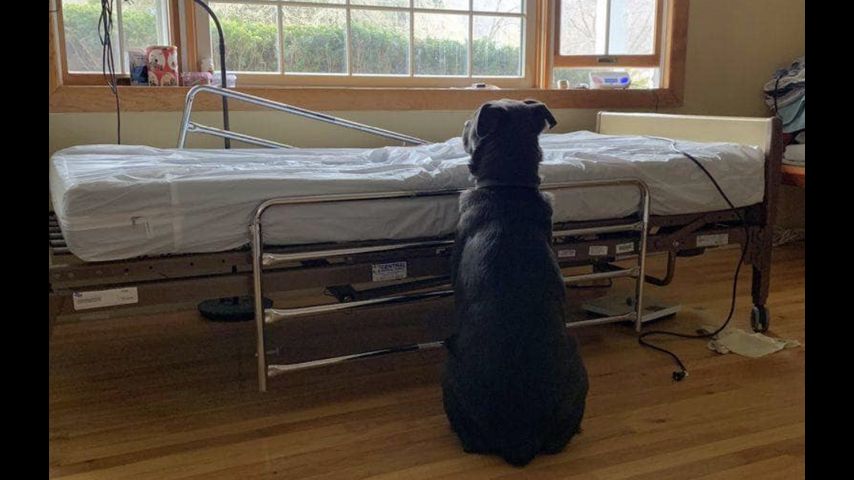 RANDOLPH, NJ - A shelter dog has a new home after a photo of him sitting alongside his dead owner's empty hospital bed went viral.