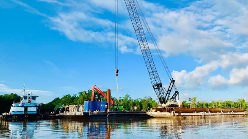 Crews begin sinking barge flood gate in Bayou Chene Wednesday