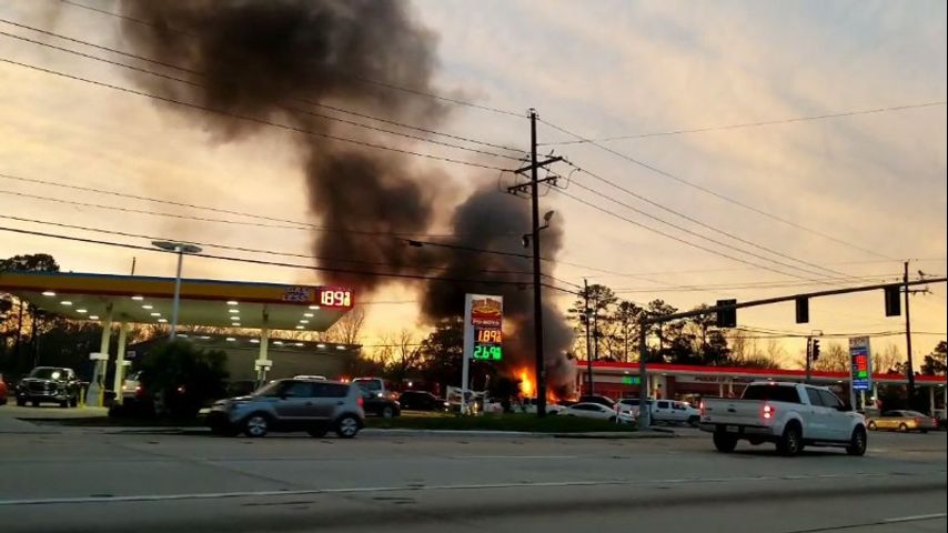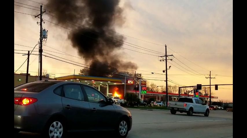 The blaze started sometime around 5:30 p.m. Photos from the scene show flames and heavy smoke at a corner service station.