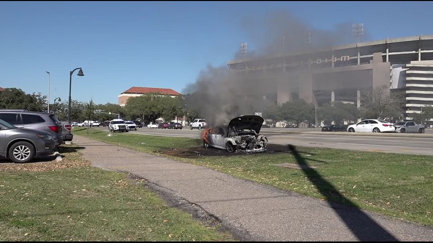 BATON ROUGE - A car was seen on fire on Nicholson Drive outside of Alex Box Stadium Sunday afternoon.