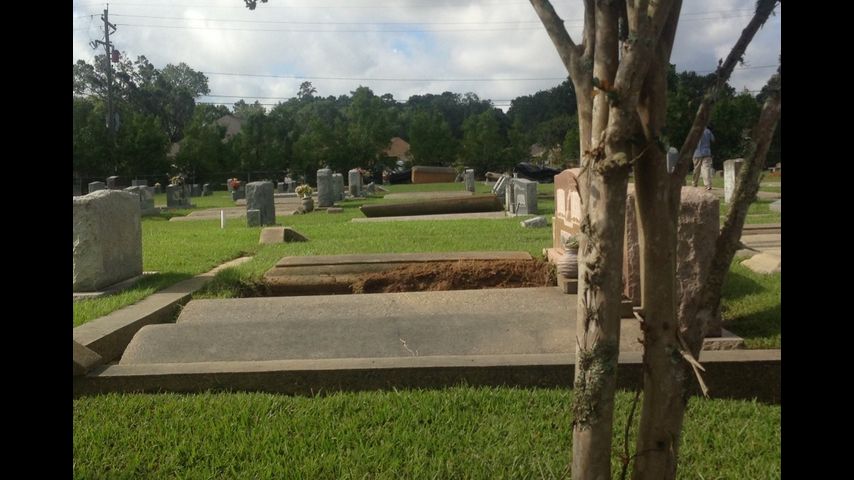 Not far away in Denham Springs Memorial Cemetary, caskets had floated back to the surface and several concrete vaults were visible.