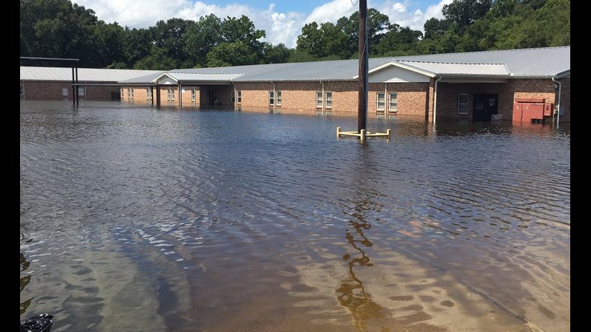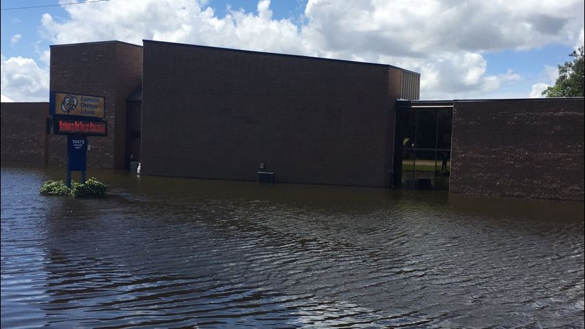 At Denham Springs High School, the gymnasium floor buckled after the school took on several feet of water. The oak floor was put down on the court in 1952. The principal of Denham Springs says it is salvagable.