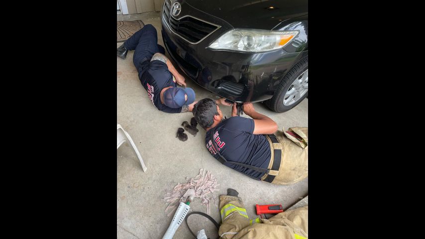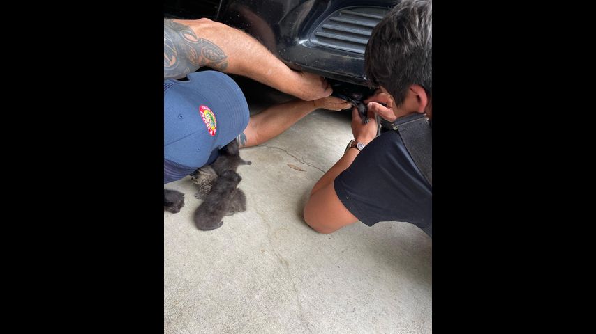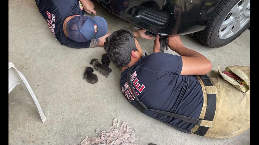 BATON ROUGE - Firefighters saved five kittens that were stuck inside a car's engine block.