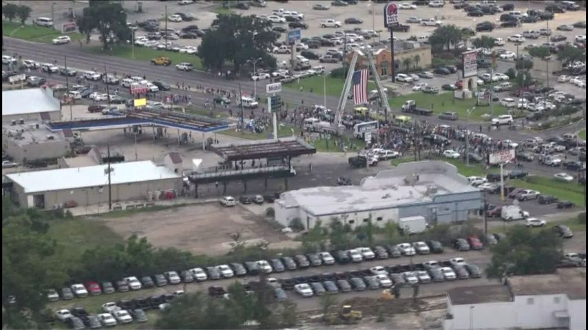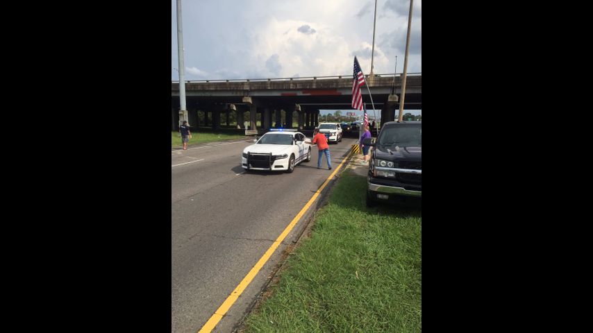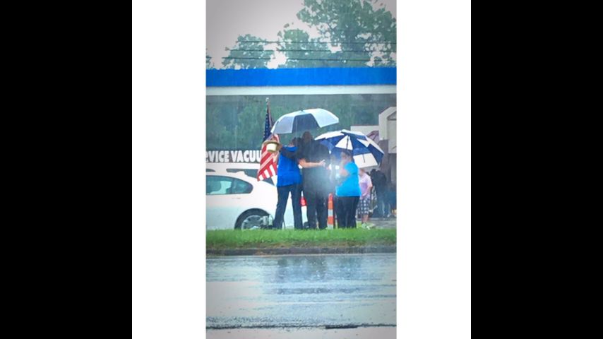 Cameras captured Sheriff Sid Gautreaux kneeling down in prayer against the back of the hearse before the procession continued to Greenoaks Funeral Home.