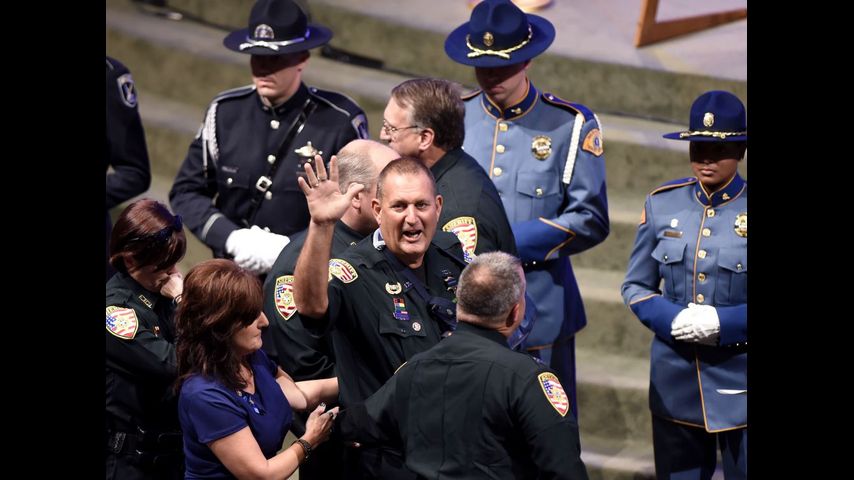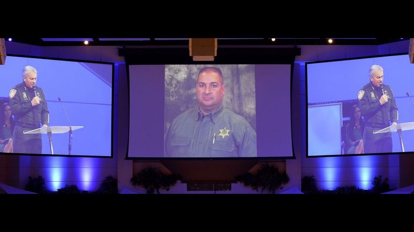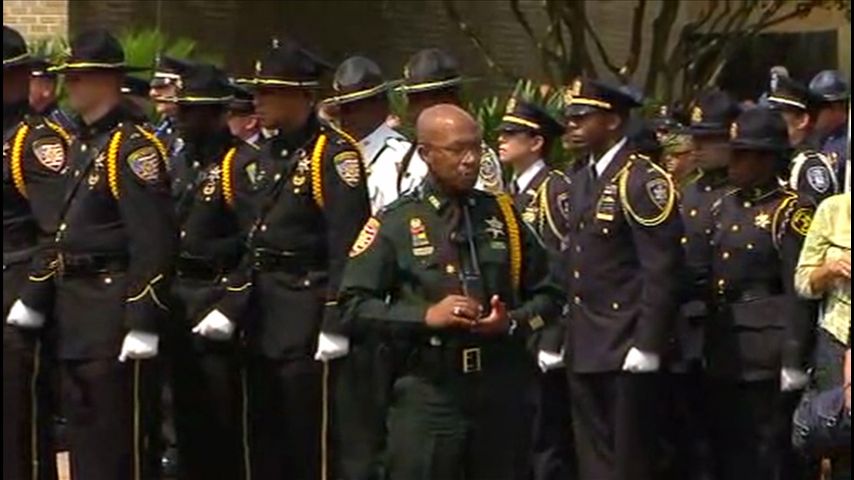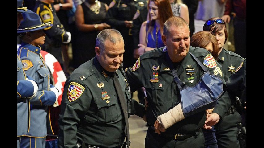 EBRSO Deputy Bruce Simmons, who was wounded in Sunday's shooting, was also present at the service. Simmons was shot during the attack and required two surgeries to repair a shattered humerus.