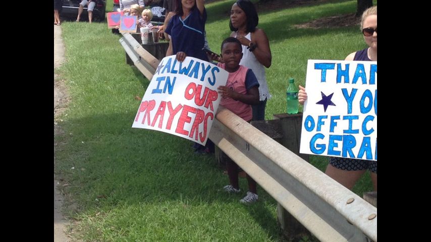 A massive turnout appeared at Healing Place church where the viewing and funeral for Officer Gerald were held. The funeral procession took the interstate to arrive at his final resting place at Louisiana National Cemetary.