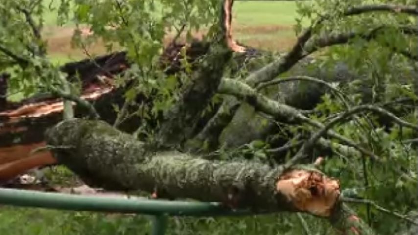 Lots of branches and limbs on the roads and sidewalks.