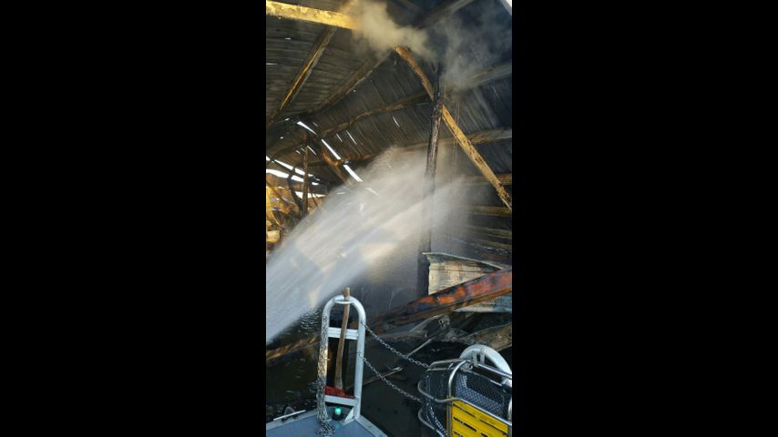 Leblanc said the fire spread from Blind River Bar to two other nearby camps. The buildings suffered "substantial damage." Photos from the scene show firefighters battling the flames from fireboats.