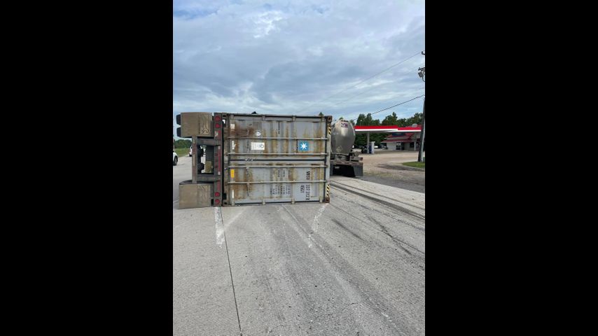 Photos shared by the West Baton Rouge Sheriff's Office showed one of the trailers was turned on its side.