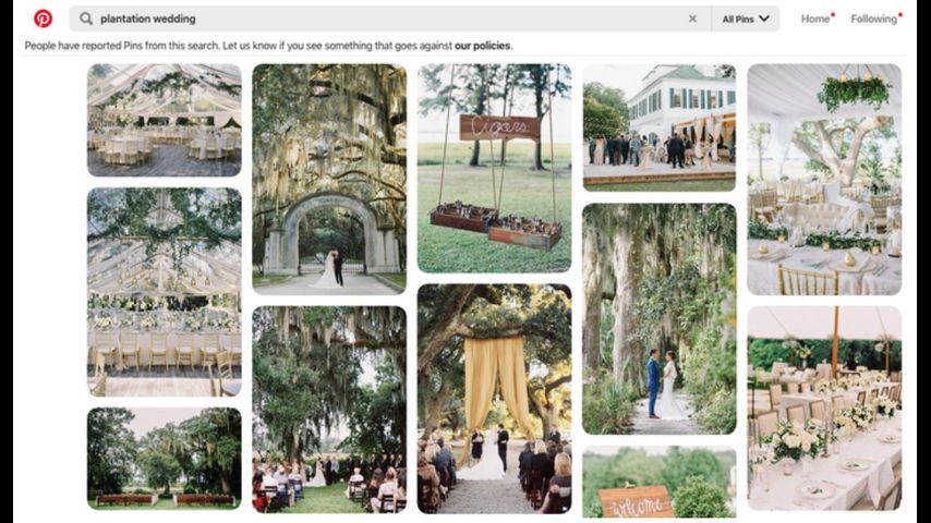 Pinterest, The Knot to stop promoting plantation weddings