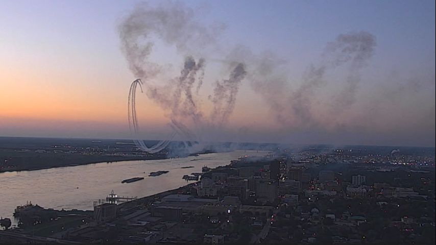 BATON ROUGE - Three planes were spotted flying above Baton Rouge on Tuesday evening, leaving behind trails of smoke as they did barrel rolls through the sky.