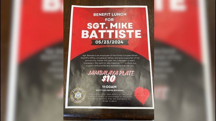 According to the PCPSO, the lunch is being held for Sgt. Mike Battiste. It will be held at the Scott Civic Center in New Roads at 11 a.m. Thursday,
