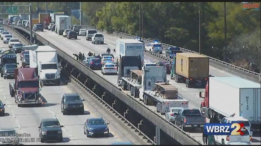 The chase ended when traffic made I-10 impassable. The area was heavily congested due to traffic backing up across the river because of lane closures on La. 1 southbound. Multiple cars were struck by Smallsreed during the pursuit, authorities told WBRZ.