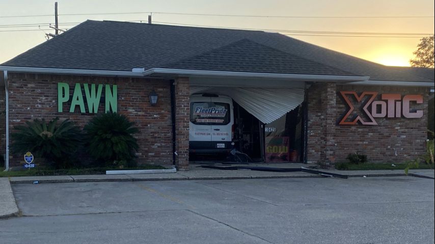 Van crashes into pawn shop along Airline Highway, police searching for driver