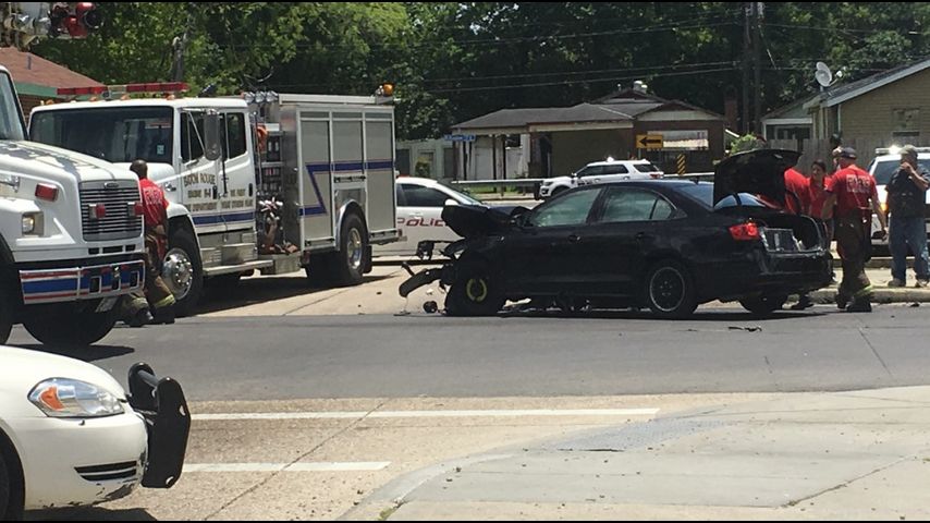 The crash was reported just after noon on Bogan Walk near the Acadian Thruway. Baton Rouge police and BRFD were called to the scene after a car reportedly slammed into a pole.