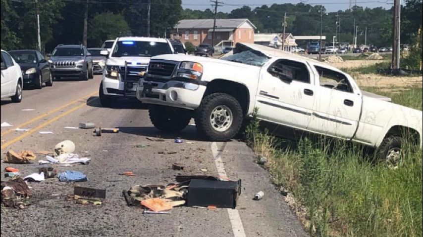 The Central Police Department says the white GMC pick-up flipped several times on Sullivan Road just before 10 a.m. Monday.