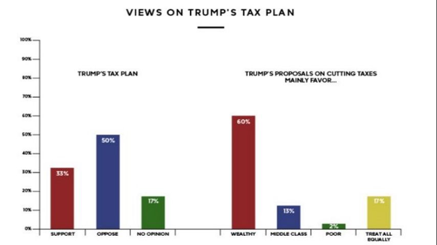 A key criticism is the sense that the plan would mostly benefit the rich: 60 percent say so, versus 17 percent who think it will treat all people equally and 13 percent who this think the middle class mainly will benefit.