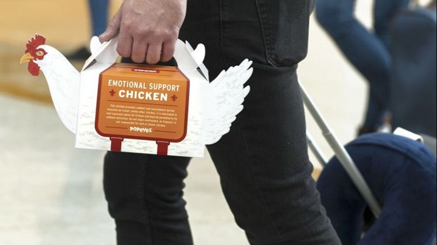 Starting today, Popeyes has launched their "Emotional Support Chicken" boxes, exclusively at the Philadelphia International Airport. The chicken-shaped containers will "provide a good-hearted laugh most need to get through stressful holiday travel," the fried chicken chain said.