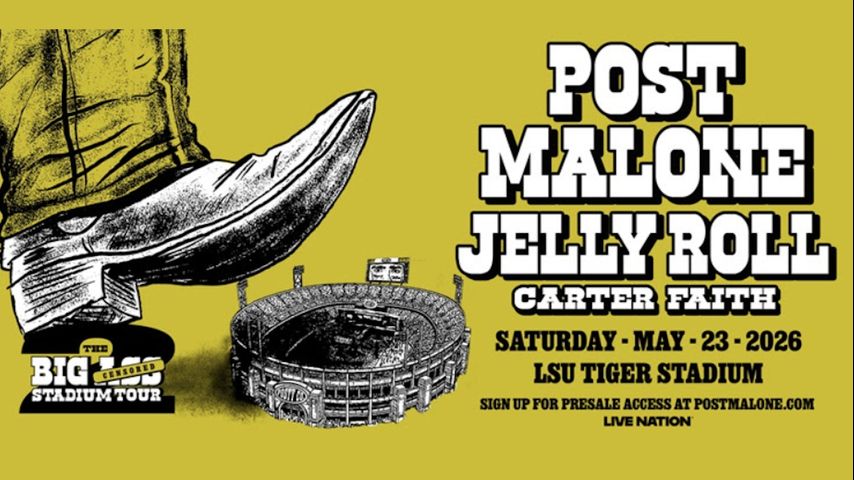 Post Malone, a nine-time diamond-certified global superstar, and Jelly Roll, a seven-time Grammy-nominated artist, will perform in Death Valley as part of LSU Athletics’ Death Valley Live Stadium Series on May 23, 2026.