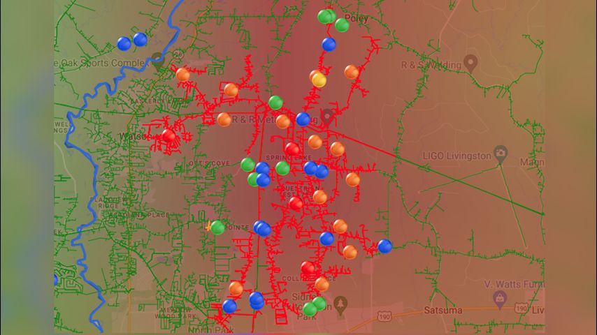 According to DEMCO maps, 9,965 people in Livingston Parish and 5,013 people in St. Helena Parish experienced outages as of 5:30 p.m.