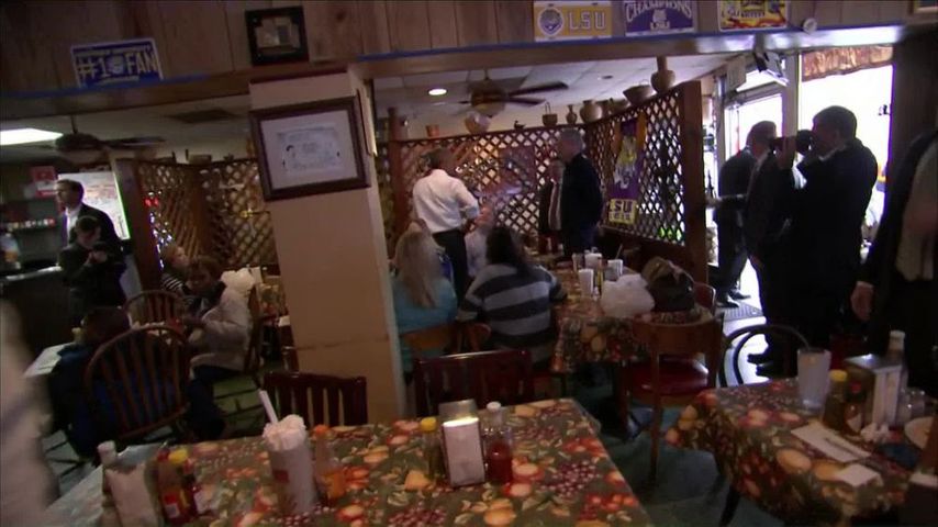 The president also held a Twitter Q&A at the high school, answering more questions on the #AskObama hashtag about the Medicaid expansion and the Affordable Care Act. Afterwards he took lunch at Poor Boy Lloyd's and greeted crowds there, before heading back to Baton Rouge Regional Airport to fly out for Washington, D. C.