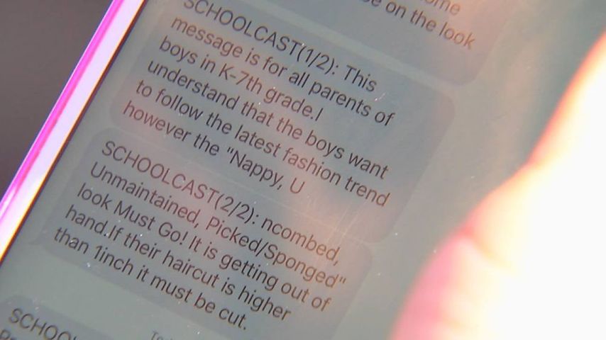 The text message, intended for all parents of students in K-7th grade said, "I understand that the boys want to follow the latest fashion trend, however the 'Nappy, Uncombed, Picked/Sponged' look Must Go! It is getting out of hand. If their haircut is higher than 1inch it must be cut."