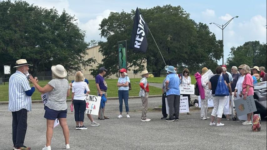 Demonstrators said that while removing additives from school lunches and other areas of culinary life is a noble endeavor, Landry could have done so without attaching himself to a vaccine skeptic like RKF Jr.