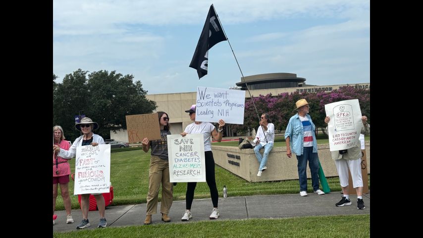"I'm not here to protest this. I'm here to protest him," one of the dozens of protestors gathered along Perkins Road said. "Healthier food, healthier diet, more exercise, all of that would be very important, especially in Louisiana."