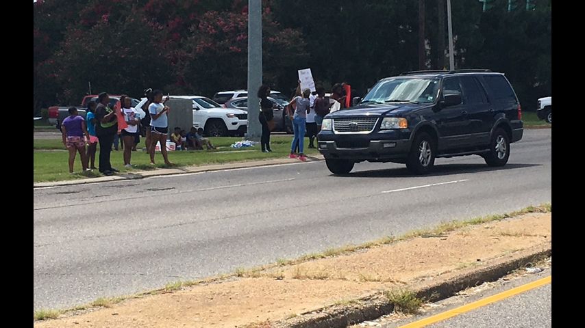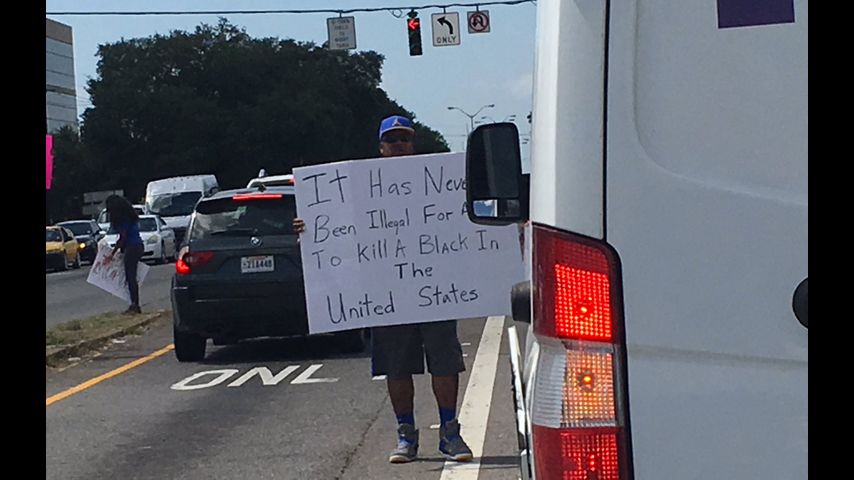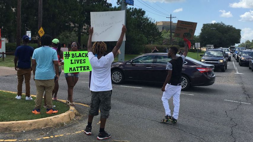 A small contingent of protesters with signs showed up at the intersection of Airline Highway and Goodwood. Baton Rouge Police Department Headquarters are located at 9000 Airline Hwy.