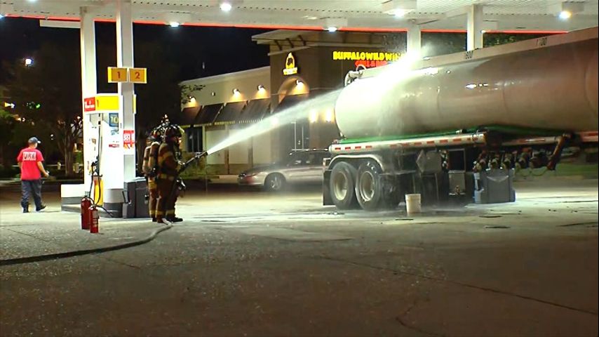 The fire was reported around 12:30 a.m. at the Circle K on Highland Road. The tanker truck driver told WBRZ a hose came loose from the truck at the same time a nearby car started its engine. It sparked a small fire that almost reached the tanker.