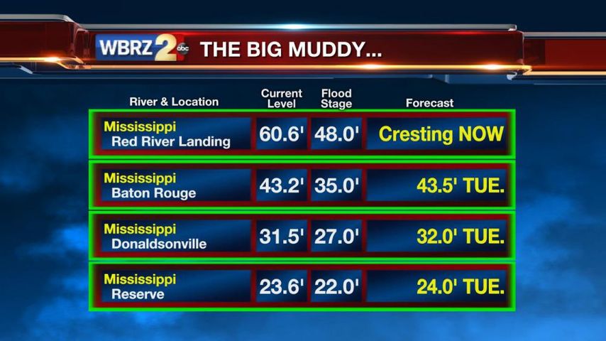 Many gauges along the Mississippi and Atchafalaya Rivers are cresting early this week.
