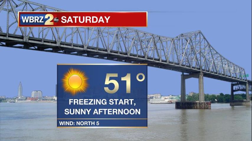 After That: Yet another freeze is then possible on Sunday morning. The part of the forecast everybody wants to know about is Sunday and Monday. Actually, partly sunny skies and cool temperatures should prevail for most of Sunday. By nighttime, a fast moving disturbance will spread clouds and showers into the region. Between 2am and 8am Monday, the atmosphere may become just cold enough north of I-12 that some snowflakes and sleet pellets could mix with raindrops. However, the ground will remain above freezing so slick surfaces and accumulation are unlikely. Additionally, overall precipitation amounts will be light. As temperatures warm back through the 30s into the low 40s, clouds and some light rain showers may linger on a chilly, gloomy Monday. CLICK HERE to view your complete 7-Day Forecast.