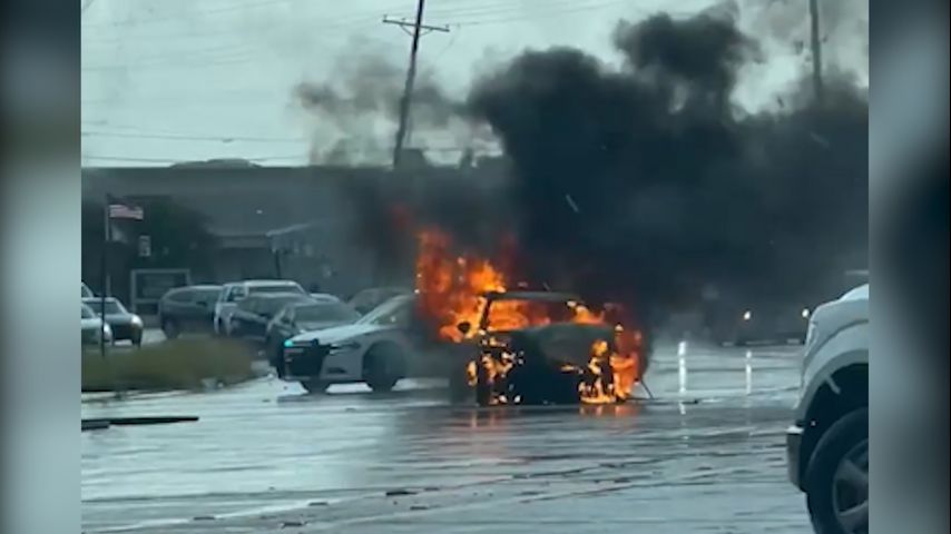 It was not immediately clear what caused the vehicle to catch fire in the first place.