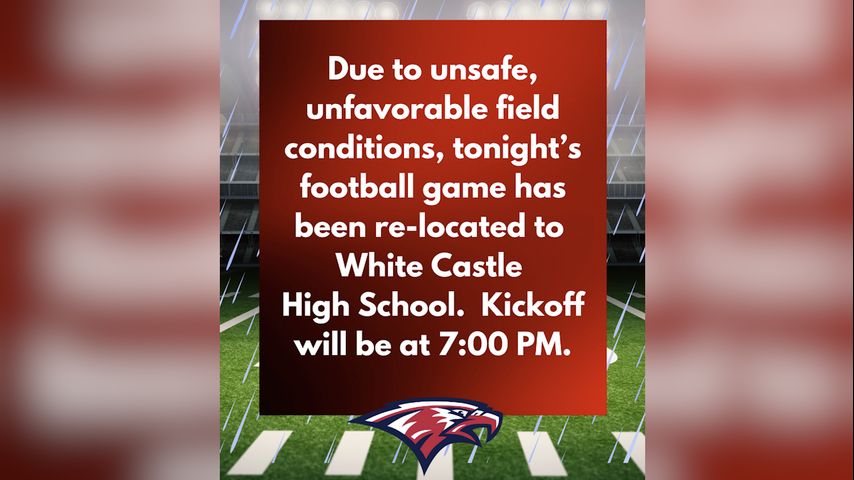 The football game between Central Catholic and White Castle High School has been relocated and will now take place at White Castle High School at 7:00 p.m.