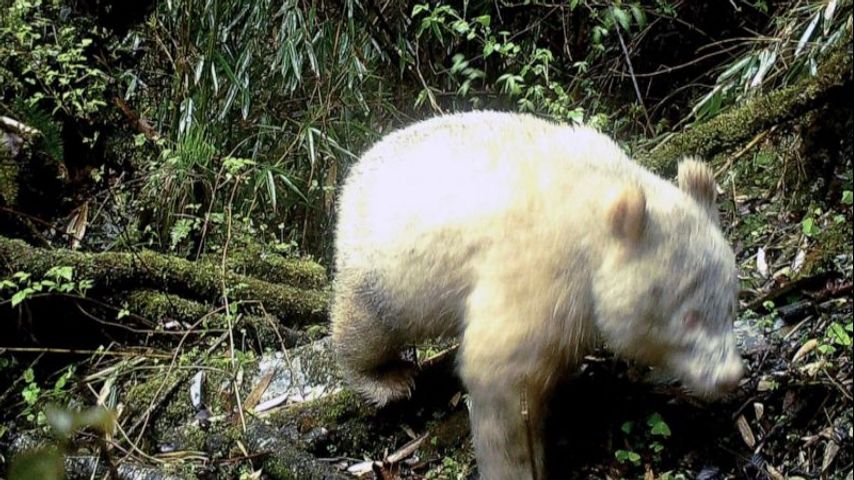 Rare all-white panda captured on camera in Chinese reserve