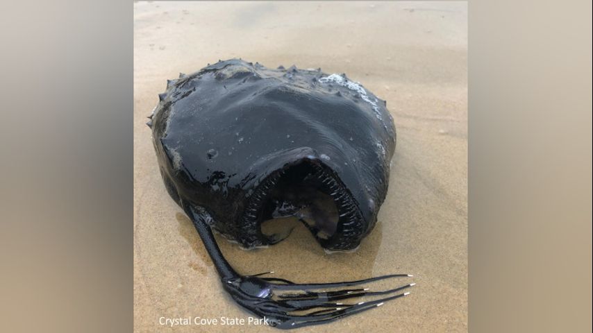 Representatives with Crystal Cove State Park Pacific say a type of Angler Fish called a Pacific Football Fish washed up on the shores of Newport Beach, about 60 miles south of Santa Monica.