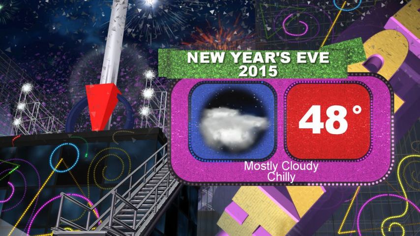 By midnight, if you're heading out to watch the red stick drop, you'll need a jacket, but not necessarily a rain jacket. Temperatures will be near 48° under mostly cloudy skies. No rain is expected.