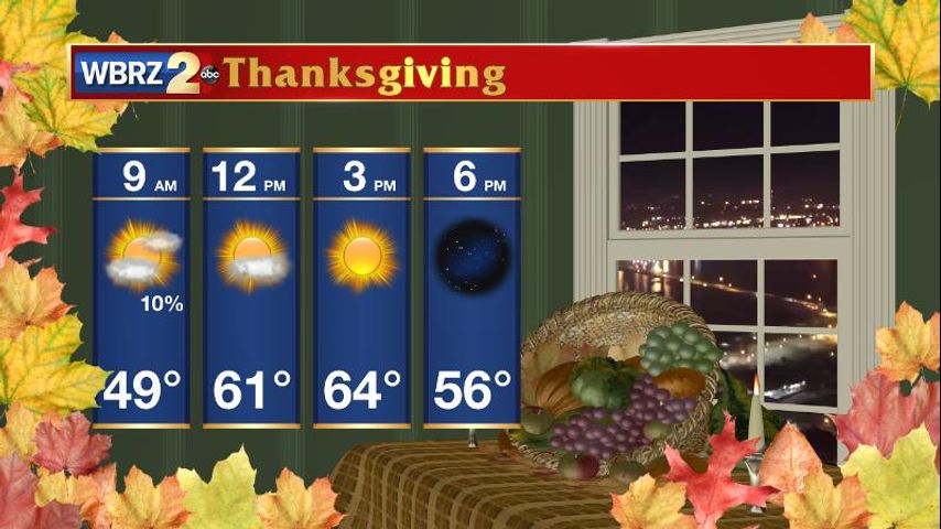 Up Next: Expect morning clouds to give way to sunshine on Thanksgiving. Temperatures will remain just a touch below average.