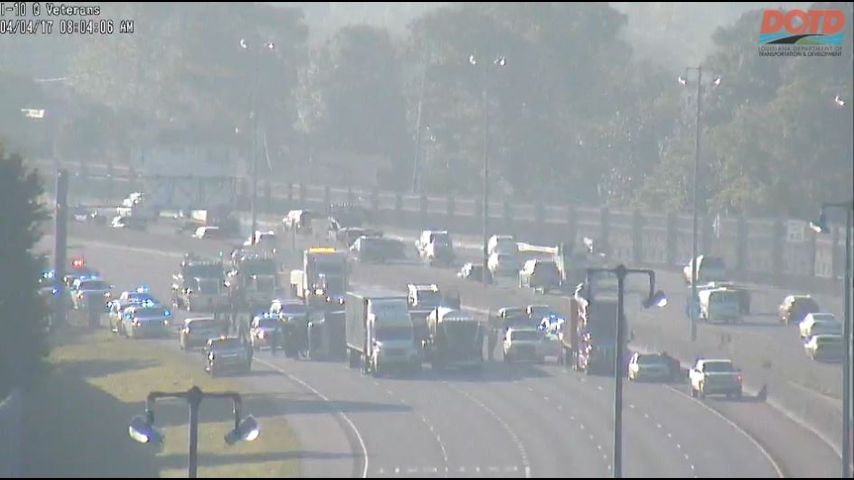 According to WWLTV, I-10 west at the Veterans Boulevard exit was closed for hours after a crash around 5 a.m. involving four cars and four 18-wheelers. The roadway was cleared around 10:30 a.m.