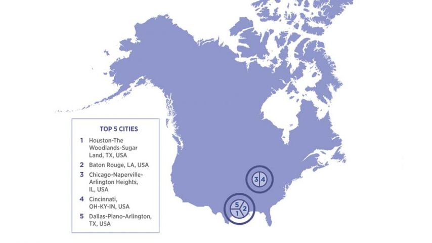 BATON ROUGE - Conway Inc.'s latest edition of the publication's "World's Most Competitive Cities" report places Baton Rouge in second position, behind Houston, for economic development in the chemical and plastics industry.