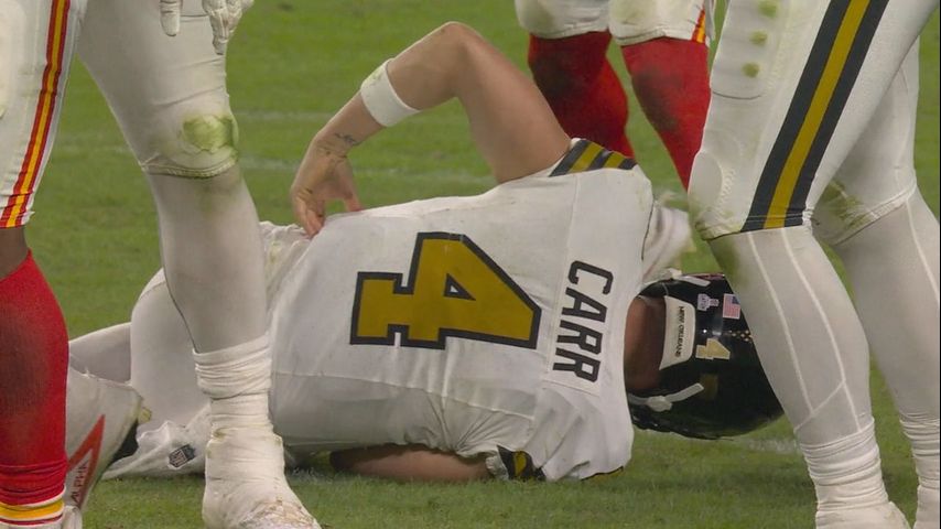 Carr struggled behind a make-shift offensive line for the last three games and in the fourth quarter of the Chiefs game, Carr went to the ground and did not return to the field of play.