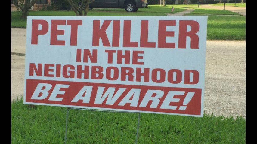 Some neighbors in a Shenandoah community say they've found dismembered cats in their yards. They have placed signs, reading "pet killer in the neighborhood, be aware!" to warn others.