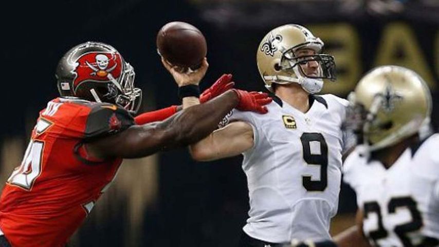 Brees took several hard hits from Tampa Bay's defense as they ripped holes in the Saints' offensive line in the first half of last Sunday's game.