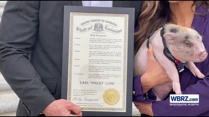 "Finding a permanent home, at Rep. Ventrella's farm here in LA without any threat of being thrown like a football, or being part of jambalaya or boudin in someone's kitchen here in LA. I Billy Nungesser, by the authority invested in me as the Lt. Governor of the great state of LA, I herby pardon and declare free Earl Piglet Long, to live out his best life," Lt. Governor, Billy Nungesser said.