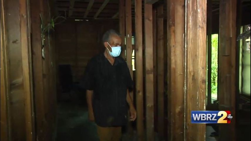 DENHAM SPRINGS - 69-year-old Larnell Mount lives in his gutted-out house on East Street in Denham Springs.